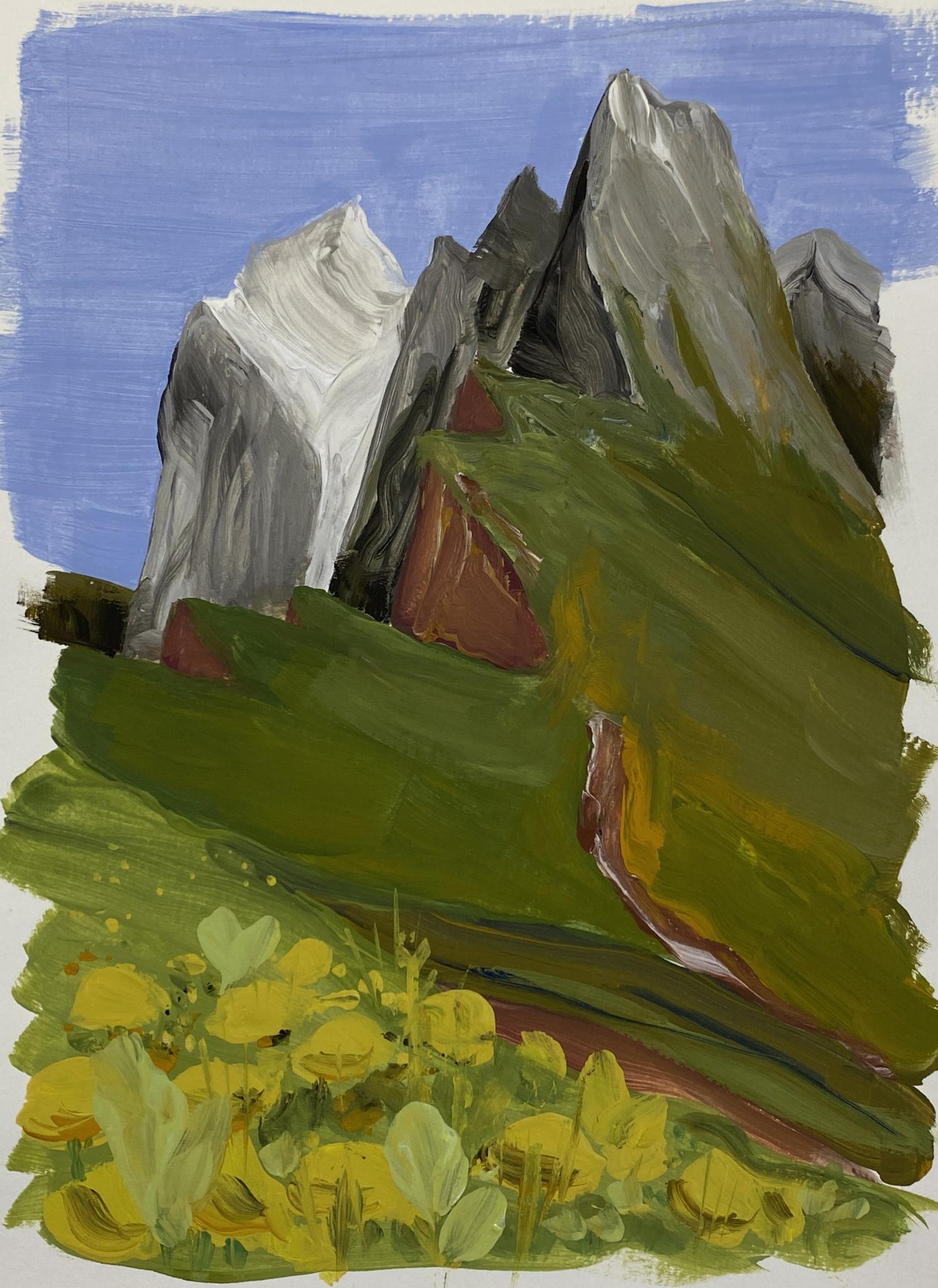 Spontan auf eine Landschaft reagieren. Die intensiven Farben einfangen. Eine Stimmung, ein überwältigendes Gefühl versuchen festzuhalten. Acryl; 21 cm x 29,7 cm (DIN A4), je 80.- (inkl. Rahmen, schwarz oder weiss)